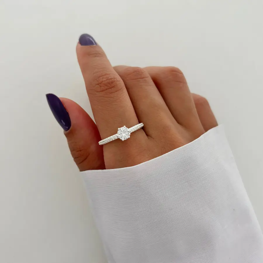 O Anel Solitário Cravejado em prata legítima 925 é a definição de elegância atemporal. Com uma pedra central em destaque, ele é acompanhado por um aro delicadamente cravejado, que realça ainda mais o brilho e a sofisticação da joia.