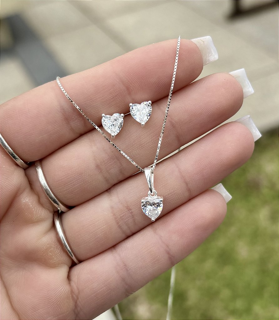 Conjunto Prata 925 com Pedra em Formato de Coração 6mm