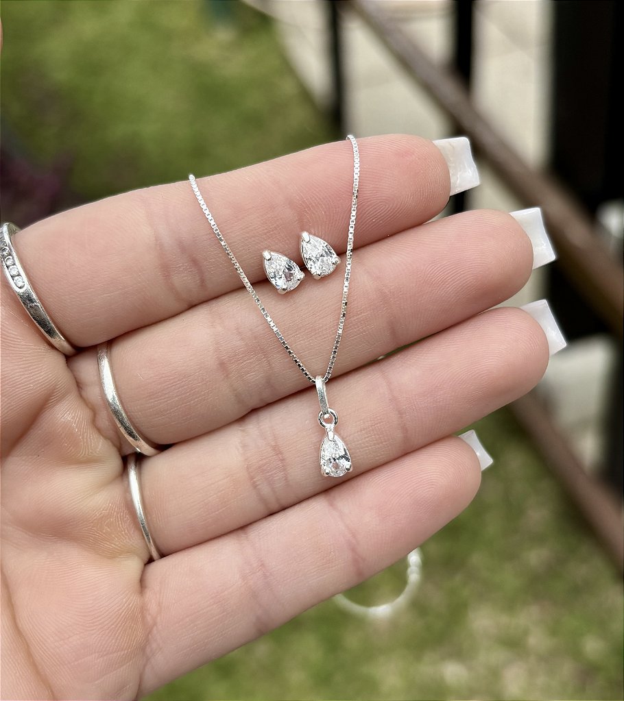 Conjunto Prata 925 com Pedra Gota 4mm – Corrente 40cm