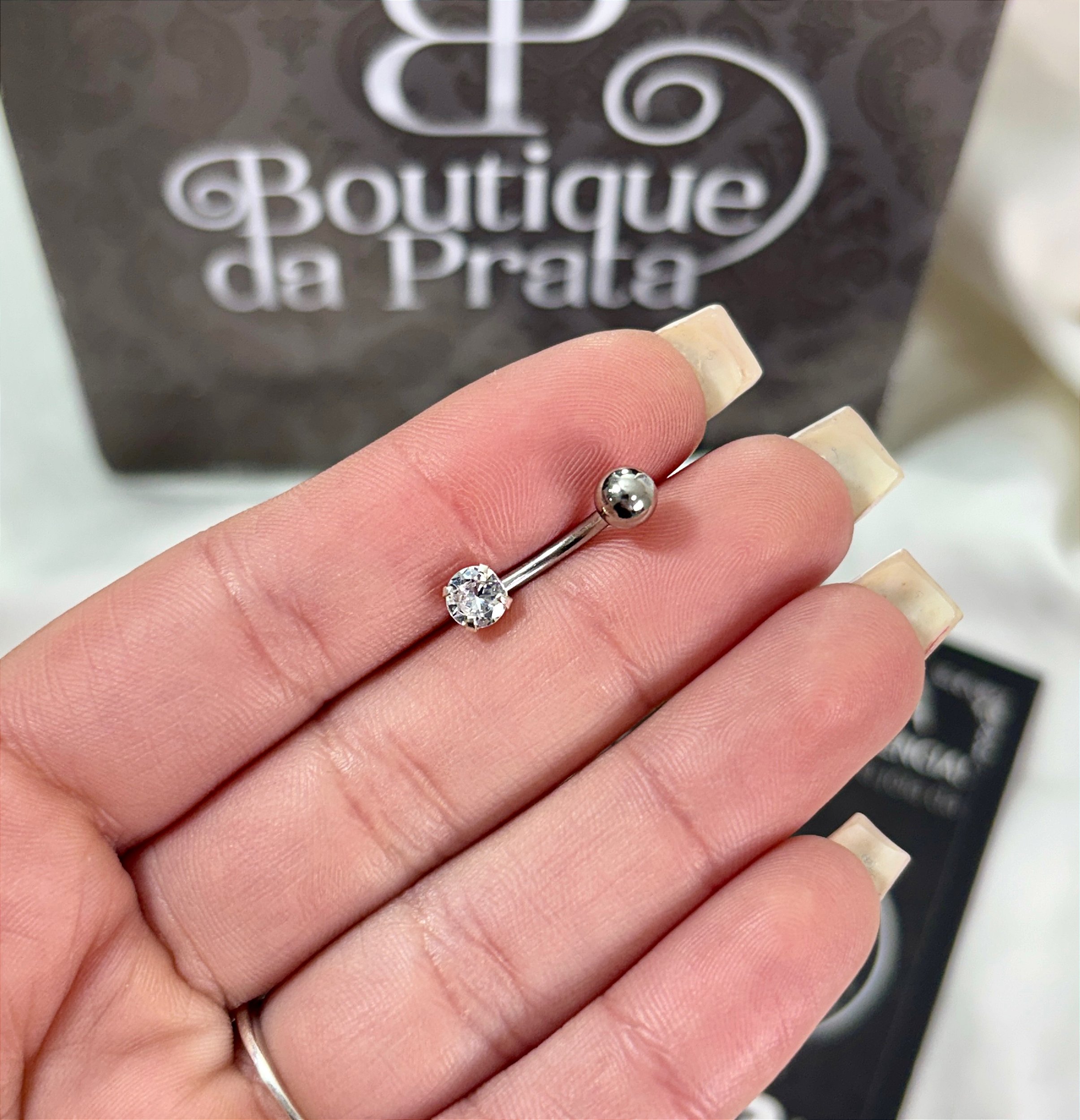 O piercing de umbigo com pedra redonda em prata apresenta design super moderno, perfeito para te acompanhar todos os dias.